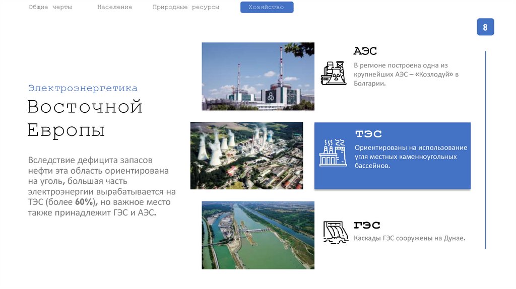 Охарактеризуйте электроэнергетику Восточной Европы.