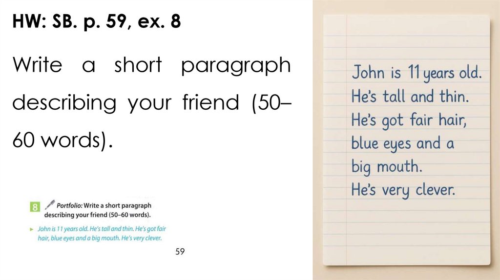 HW: SB. p. 59, ex. 8Write a short paragraph