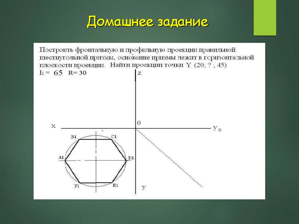 Построение проекций прямойправильной шестиугольной