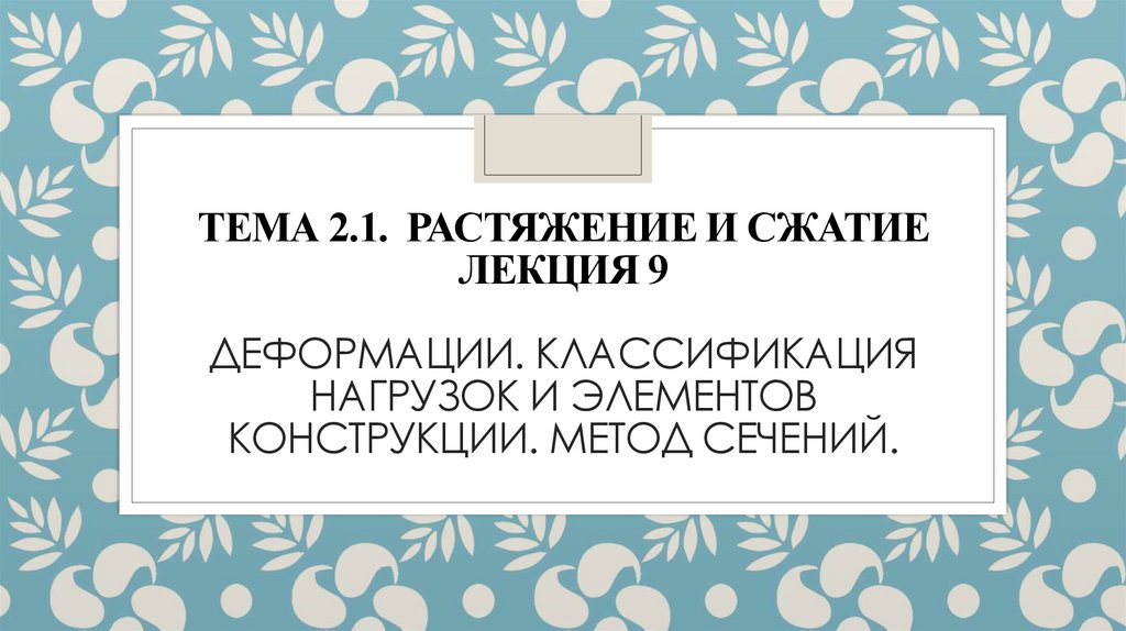 1. Тема 2.1. Растяжение и сжатие лекция 9 Деформации. Классификация нагрузок и элементов конструкции. Метод сечений.