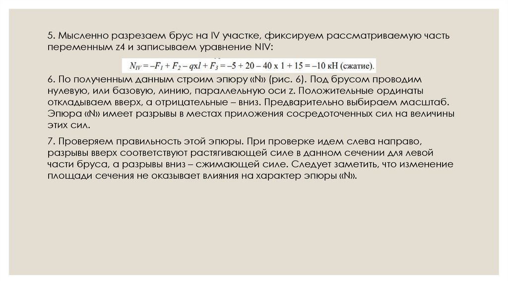 в) осевое внутреннее усилие N, возникающее в сечении стержня,