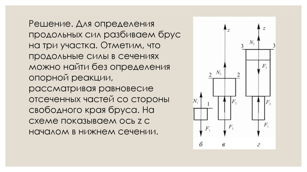 б) отбрасываем одну из частей стержня, а ее действие на другую