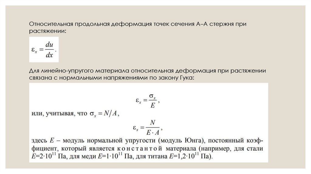 центр тяжести его сечения. Рассмотрим стержень упруго растянутый центрально