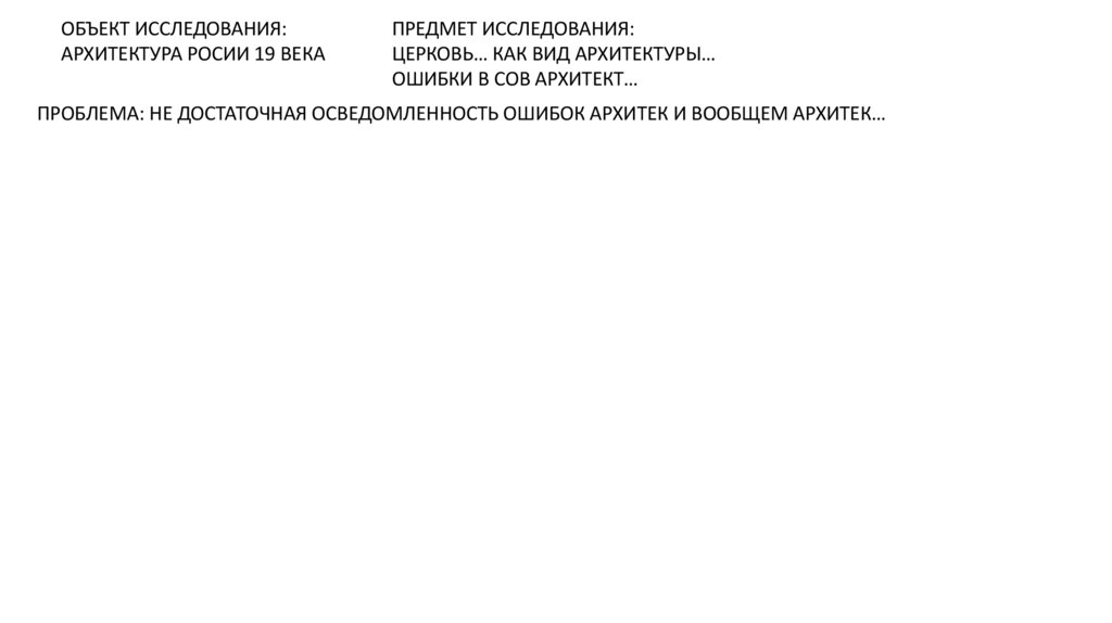 ОБЪЕКТ ИССЛЕДОВАНИЯ:АРХИТЕКТУРА РОСИИ 19 ВЕКА