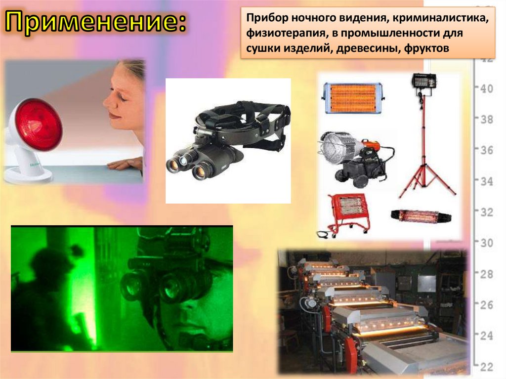 Прибор ночного видения, криминалистика,физиотерапия, в промышленности для