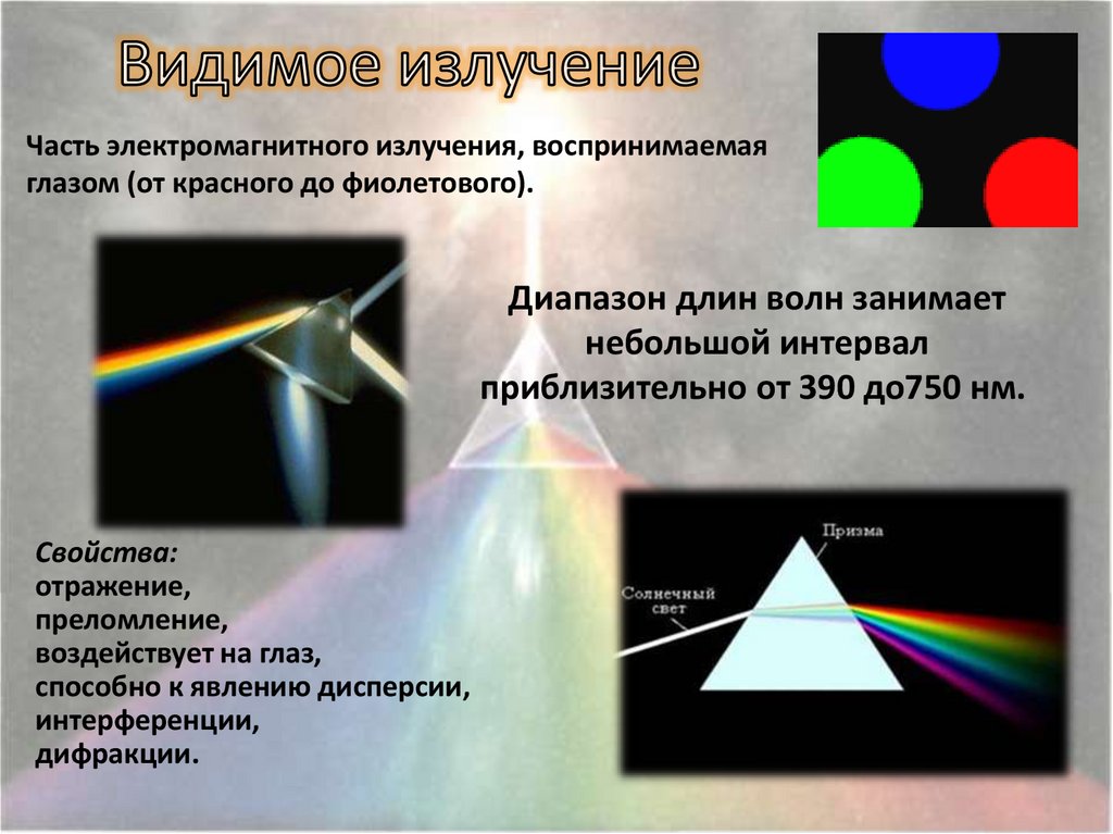 Часть электромагнитного излучения, воспринимаемаяглазом (от красного до фиолетового).