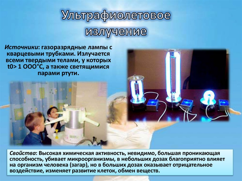 Источники: газоразрядные лампы скварцевыми трубками. Излучается