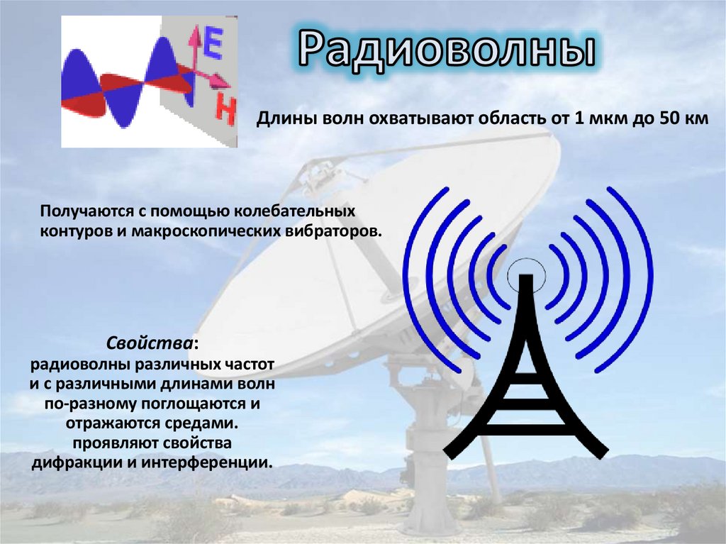 Длины волн охватывают область от 1 мкм до 50 кмПолучаются с помощью колебательных