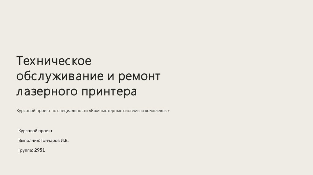 ВведениеЛазерный принтер — сложное электромеханическое устройство, требующее