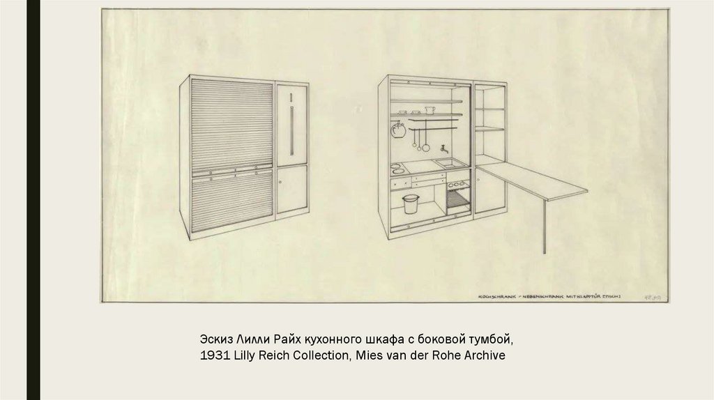 Эскиз Лилли Райх кухонного шкафа с боковой тумбой,1931 Lilly Reich Collection, Mies van der Rohe Archive