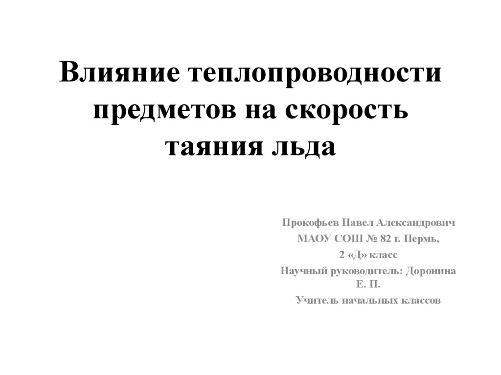 1. Влияние теплопроводности предметов на скорость таяния льда
