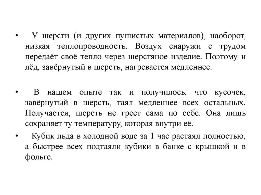 лёд, завёрнутый в шерсть, нагревается медленнее.