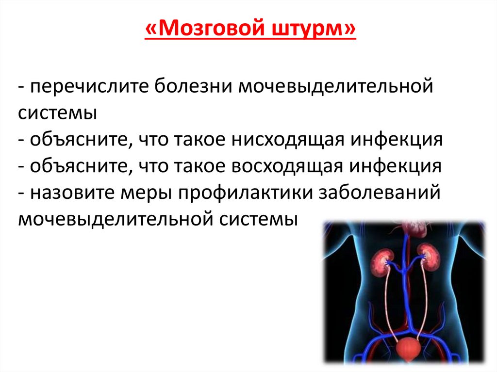 «Мозговой штурм»- перечислите болезни мочевыделительной