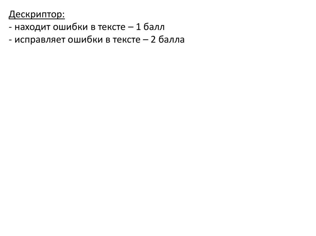 Дескриптор:- находит ошибки в тексте – 1 балл