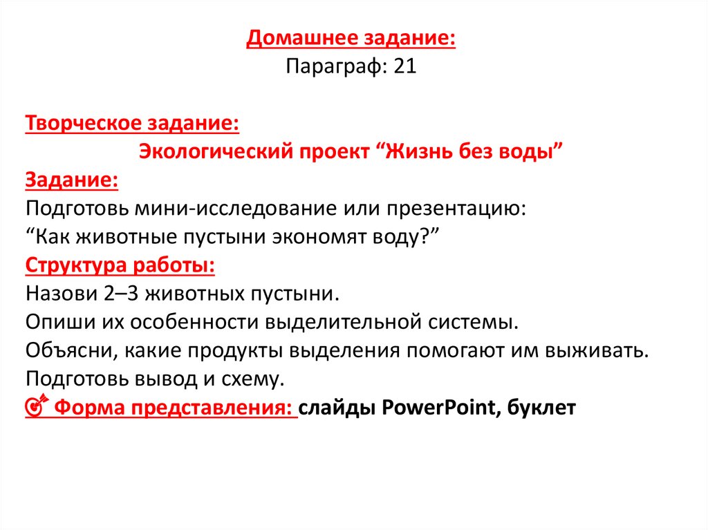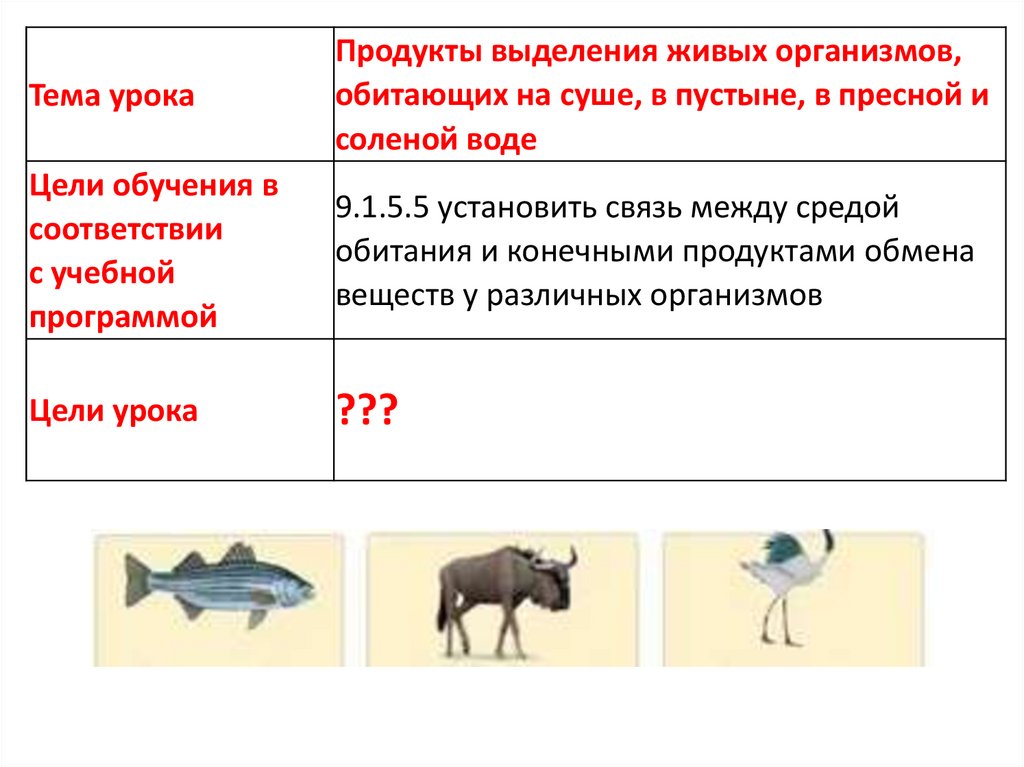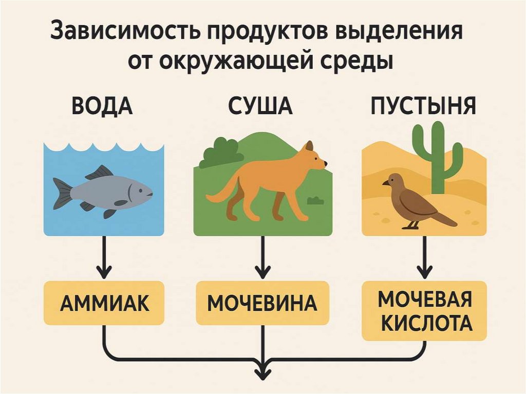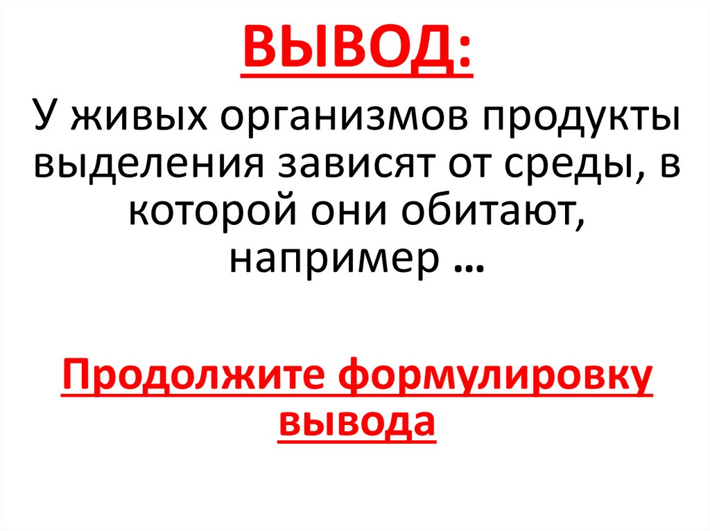 Задание 2. Определите различия в конечныхпродуктах выделения у животных, которым не