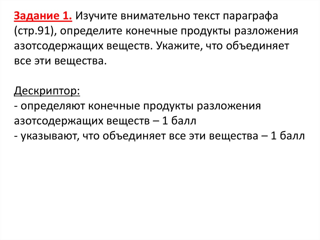 Задание 1. Изучите внимательно текст параграфа(стр.91), определите конечные продукты разложения