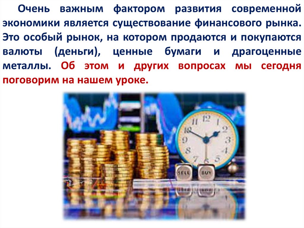 Очень важным фактором развития современнойэкономики является существование финансового рынка.