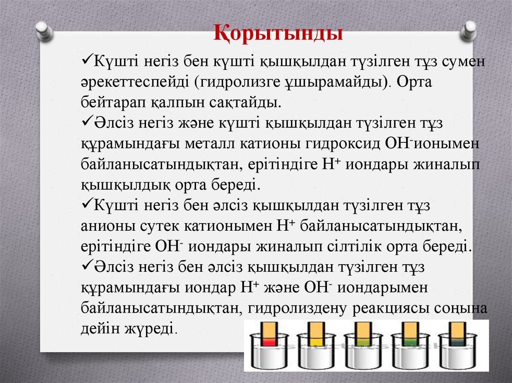 ҚорытындыКүшті негіз бен күшті қышқылдан түзілген тұз сумен