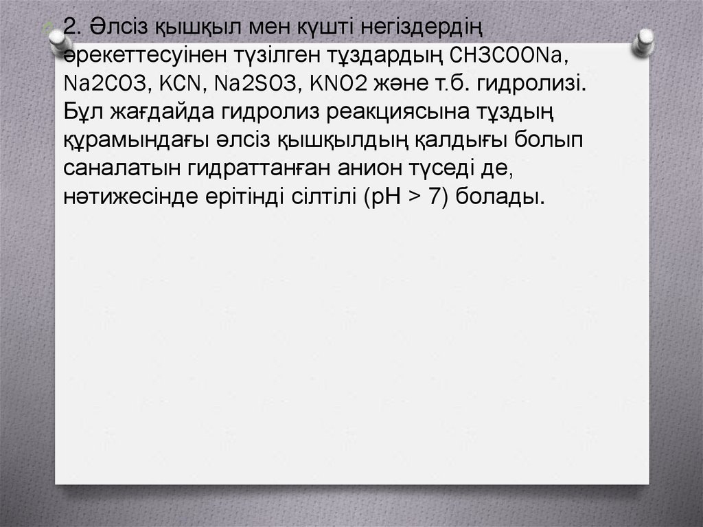 2. Күшті негізбен әлсіз қышқылдан түзілген тұздар