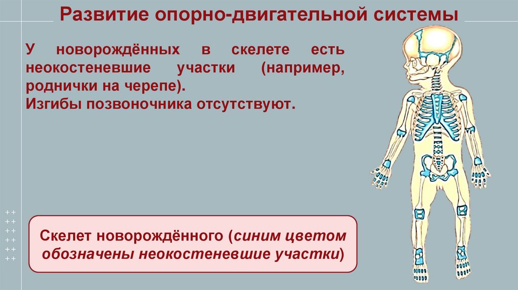 Развитие опорно-двигательной системыУ новорождённых в скелете есть