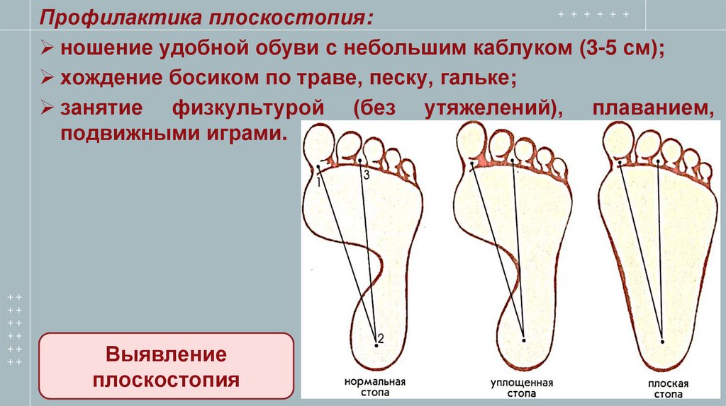 Профилактика плоскостопия:ношение удобной обуви с небольшим каблуком (3-5 см);