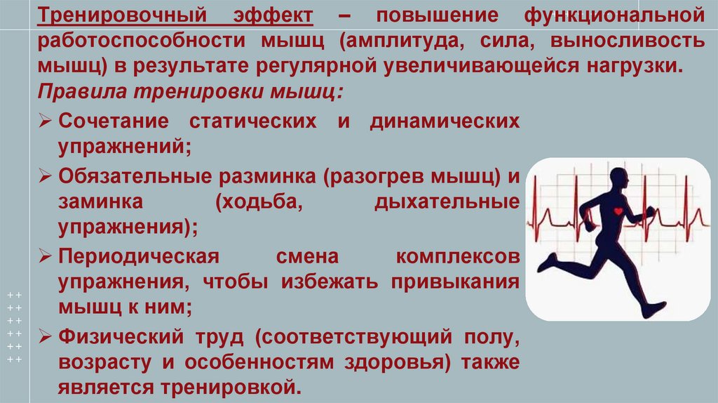 Тренировочный эффект – повышение функциональнойработоспособности мышц (амплитуда, сила, выносливость