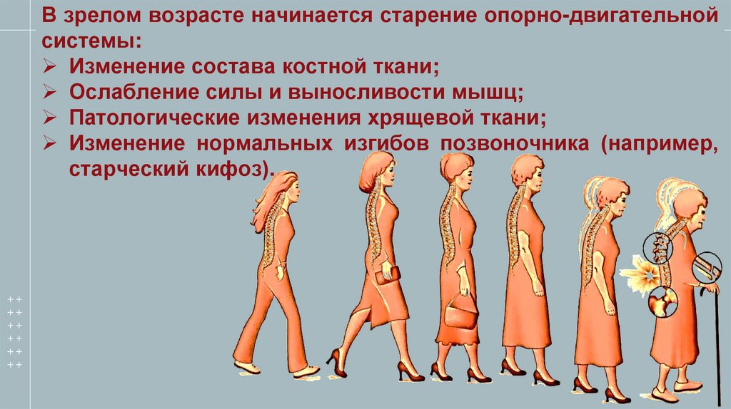В зрелом возрасте начинается старение опорно-двигательнойсистемы: