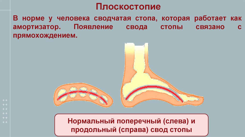 ПлоскостопиеВ норме у человека сводчатая стопа, которая работает как