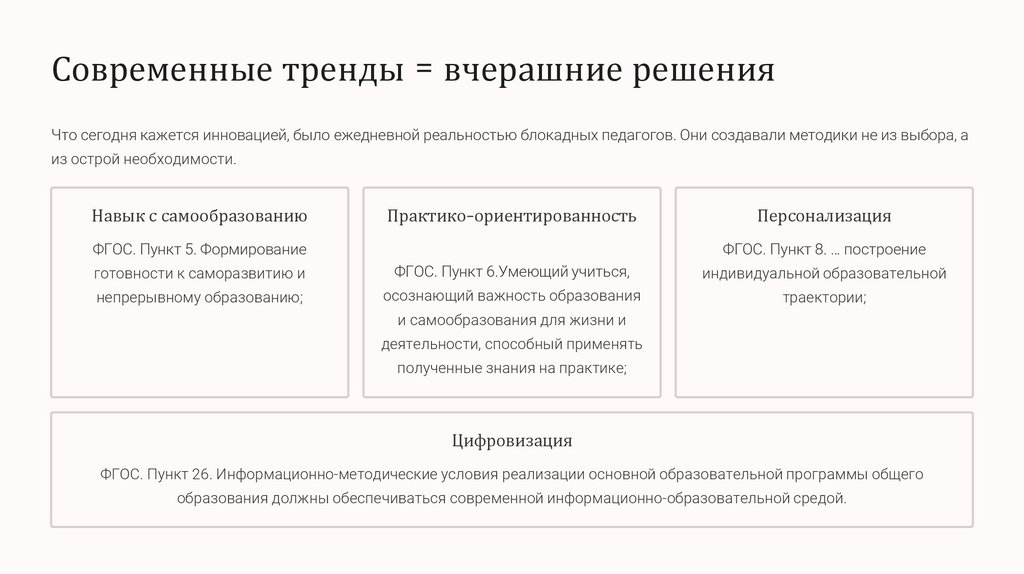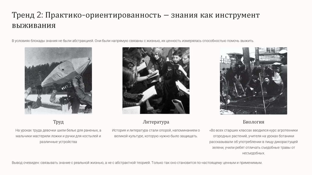 Современные тренды = вчерашние решенияЧто сегодня кажется инновацией, было ежедневной реальностью блокадных педагогов. Они создавали методики не из выбора, а