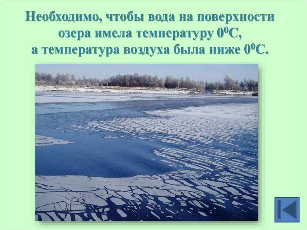 Необходимо, чтобы вода на поверхностиозера имела температуру 00С,
