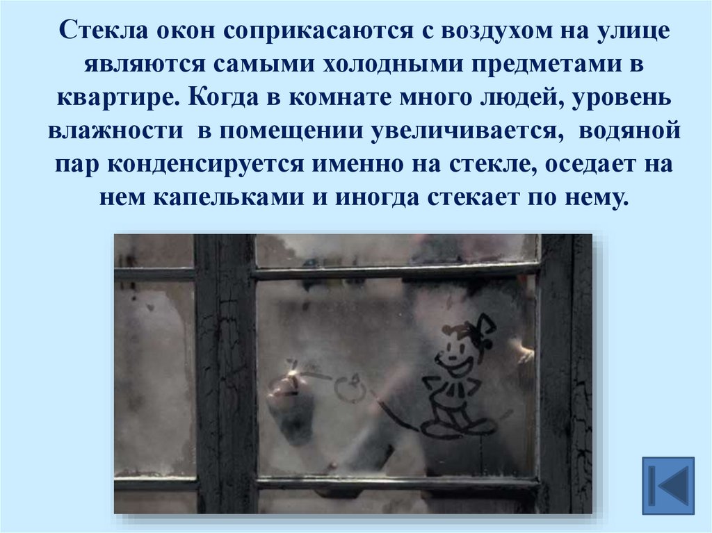 Стекла окон соприкасаются с воздухом на улицеявляются самыми холодными предметами в