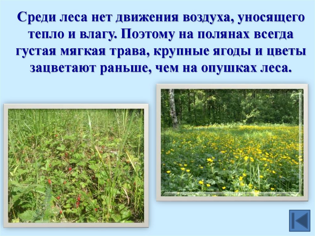 51. Почему на полянах среди леса всегда густая мягкая трава, крупные ягоды и цветы зацветают раньше, чем на опушках леса?