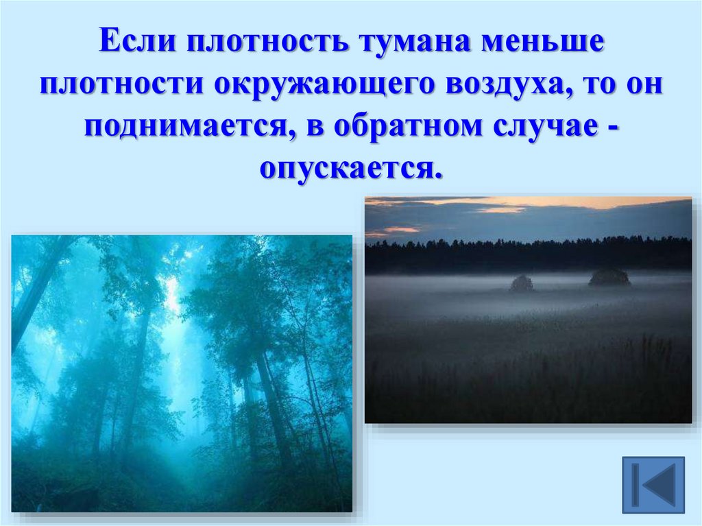 Если плотность тумана меньшеплотности окружающего воздуха, то он