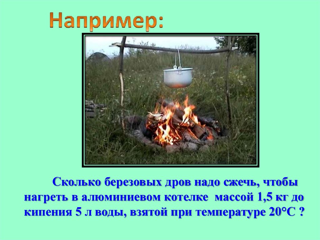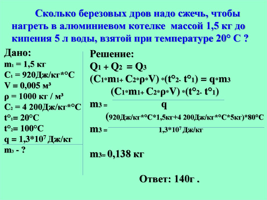 Сколько березовых дров надо сжечь, чтобынагреть в алюминиевом котелке массой 1,5 кг до