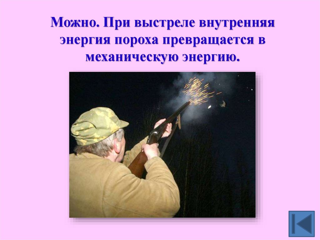 Можно. При выстреле внутренняяэнергия пороха превращается в