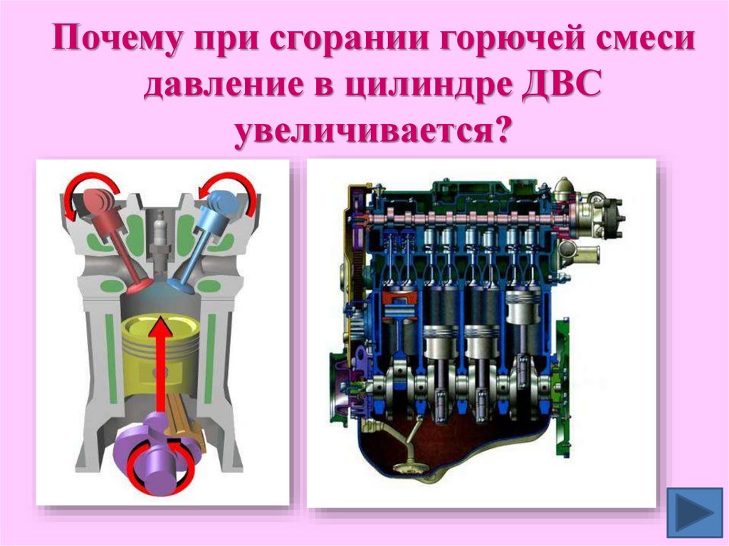 Почему при сгорании горючей смесидавление в цилиндре ДВС