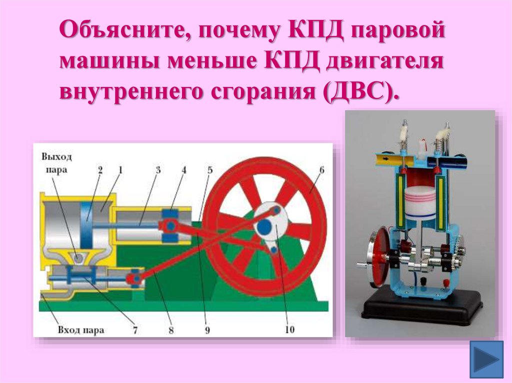 Объясните, почему КПД паровоймашины меньше КПД двигателя