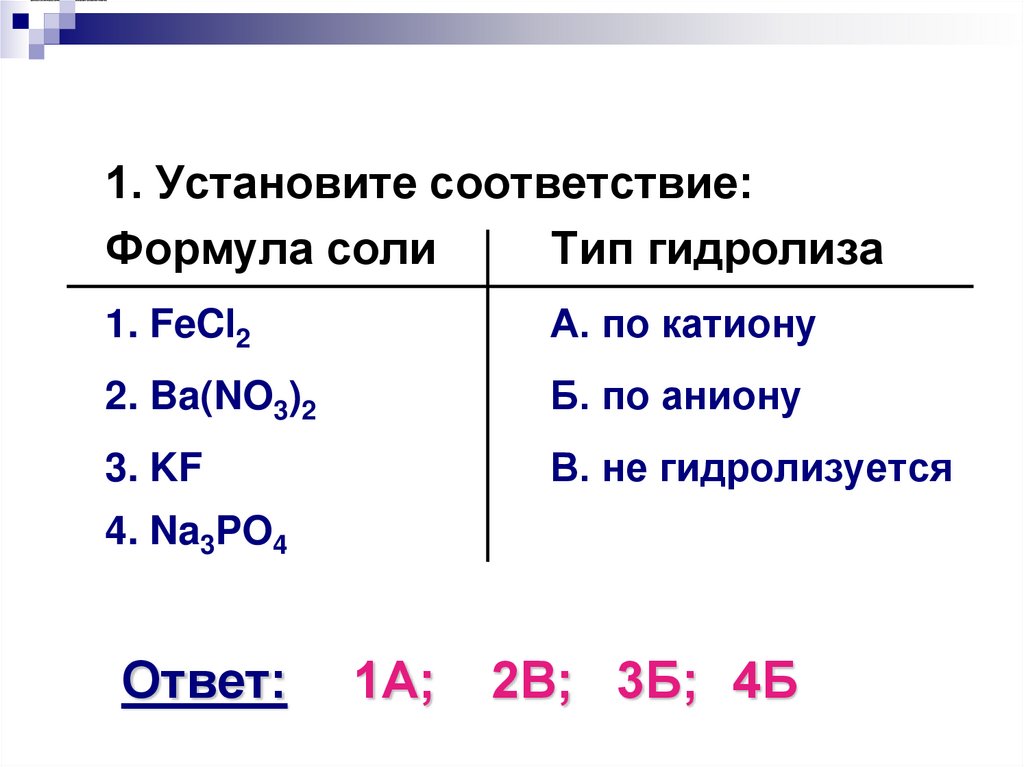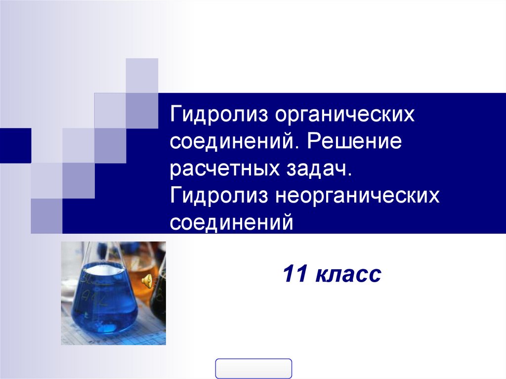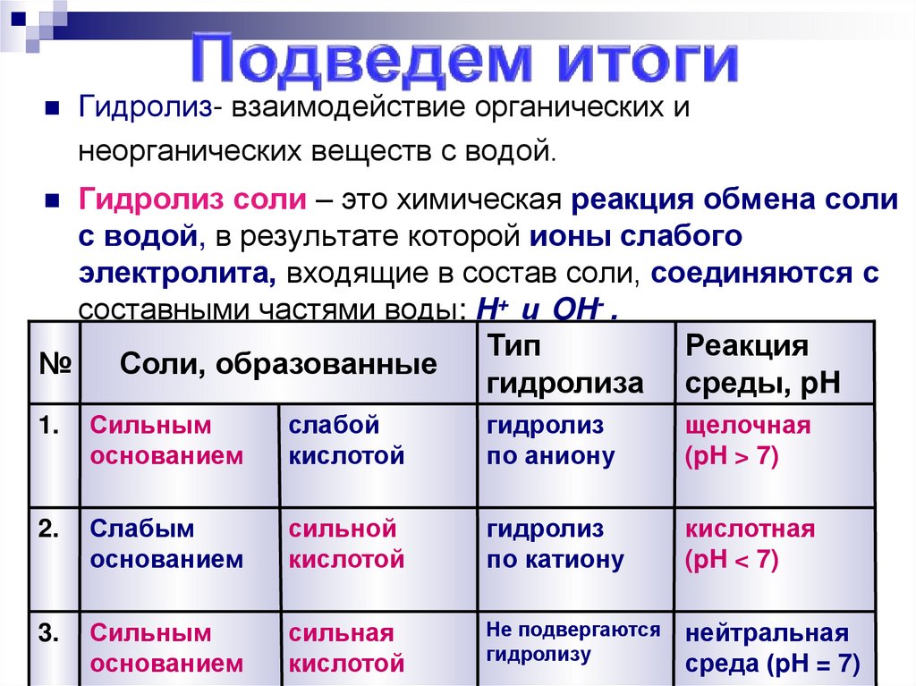 1. Гидролиз органических соединений. Решение расчетных задач. Гидролиз неорганических соединений