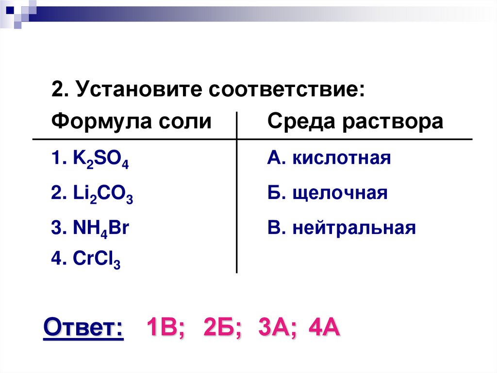 22. Задание. Определите реакцию среды водных растворов солей. Таблица № 2