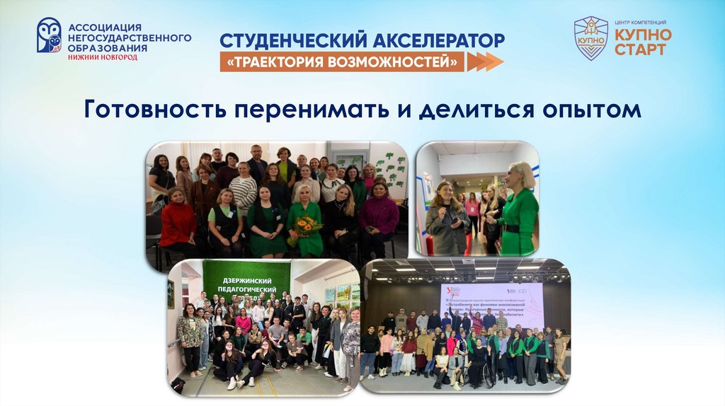 приобретение новых знаний, обмен опытом, творчество, поиск новых идей, анализ и