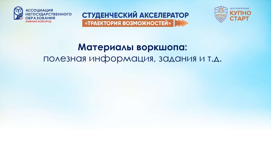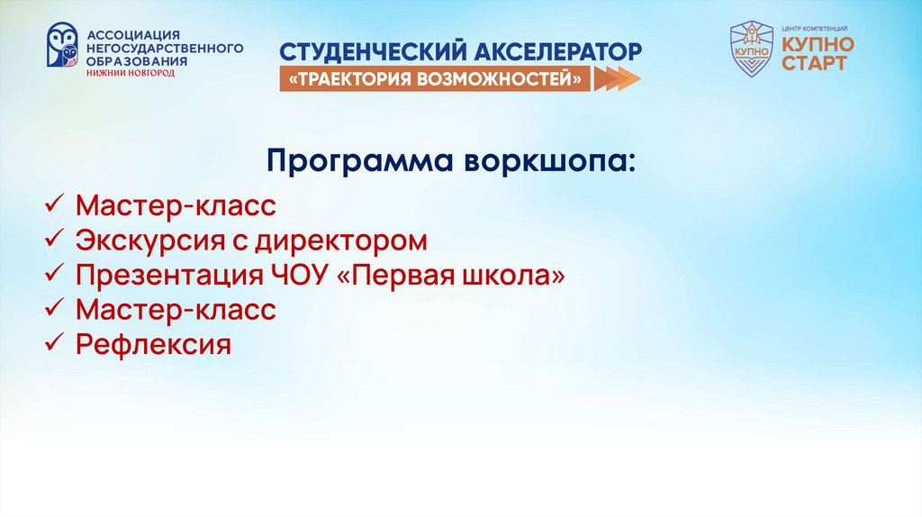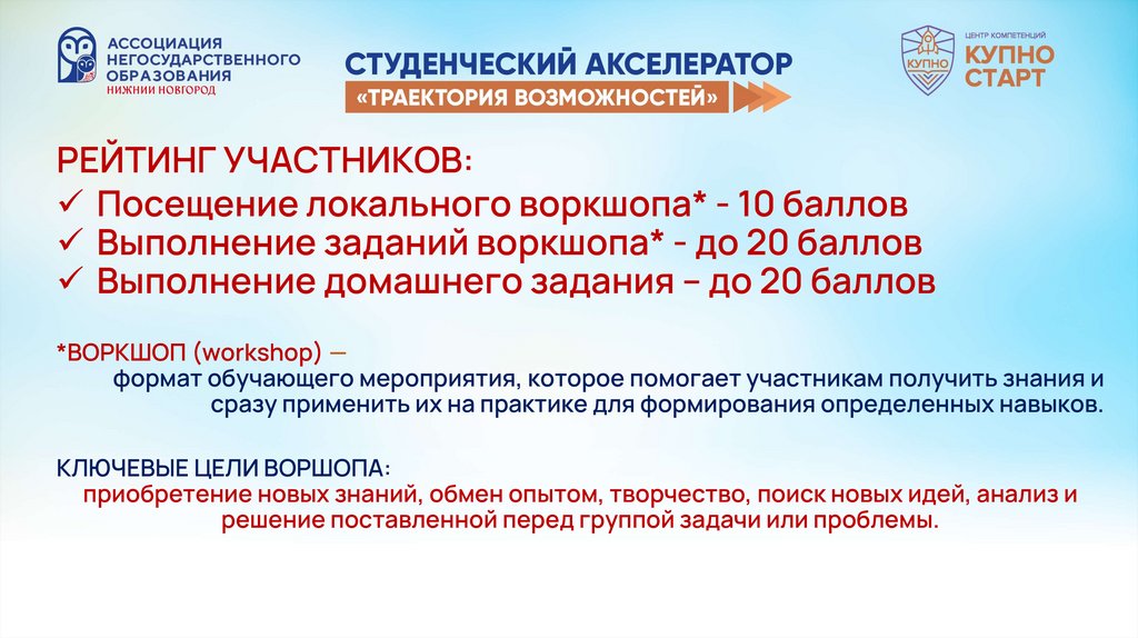 РЕЙТИНГ УЧАСТНИКОВ:Посещение локального воркшопа* - 10 баллов