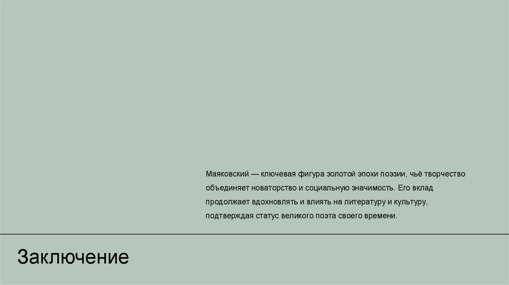 Маяковский — ключевая фигура золотой эпохи поэзии, чьё творчествообъединяет новаторство и социальную значимость. Его вклад