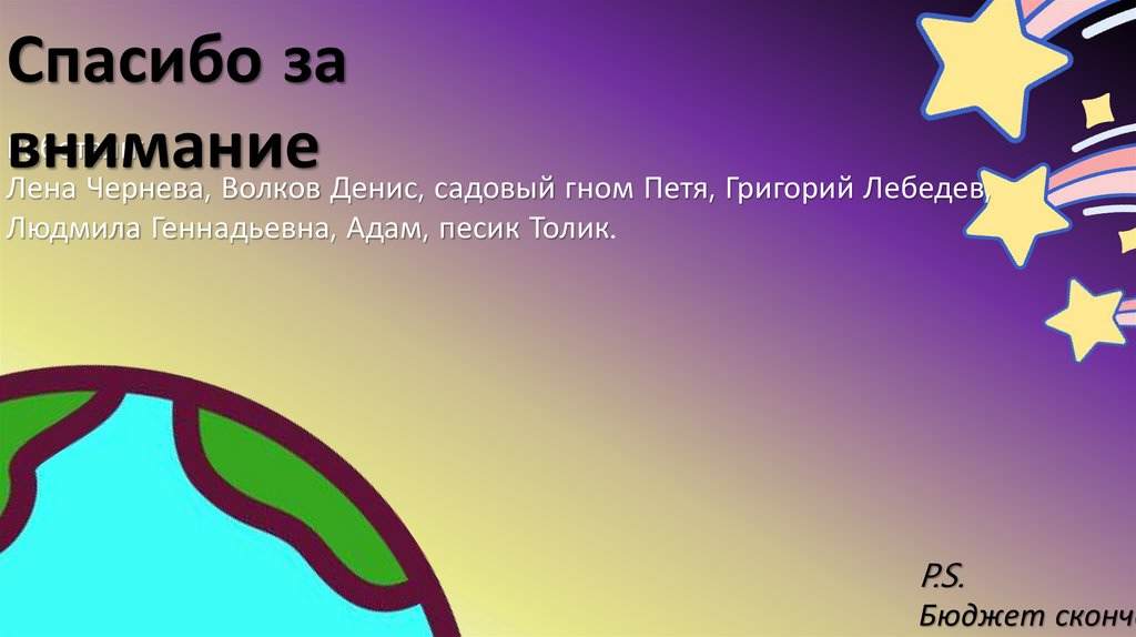 Лена Чернева, Волков Денис, садовый гном Петя, Григорий Лебедев,