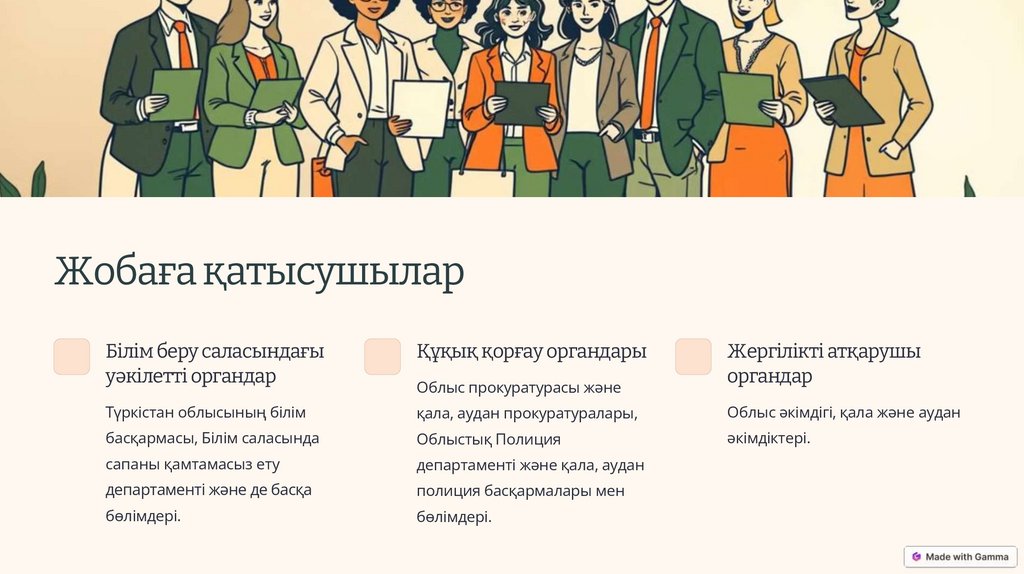 * Жоба аясында білім беру ұйымдарында кәмелетке толмағандардың істері жөніндегі