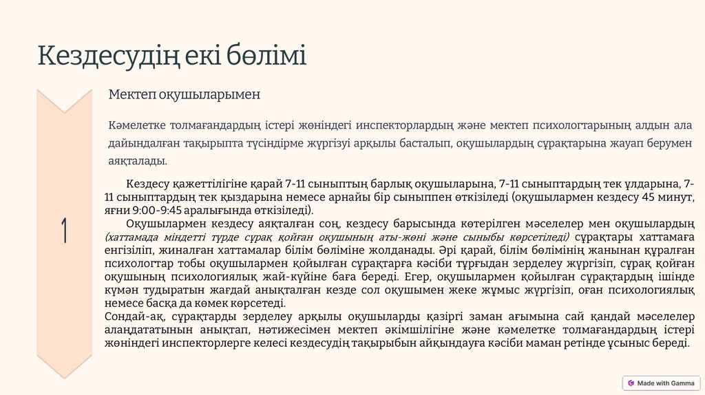 жөніндегі инспекторлерге келесі кездесудің тақырыбын айқындауға кәсіби маман ретінде ұсыныс береді.