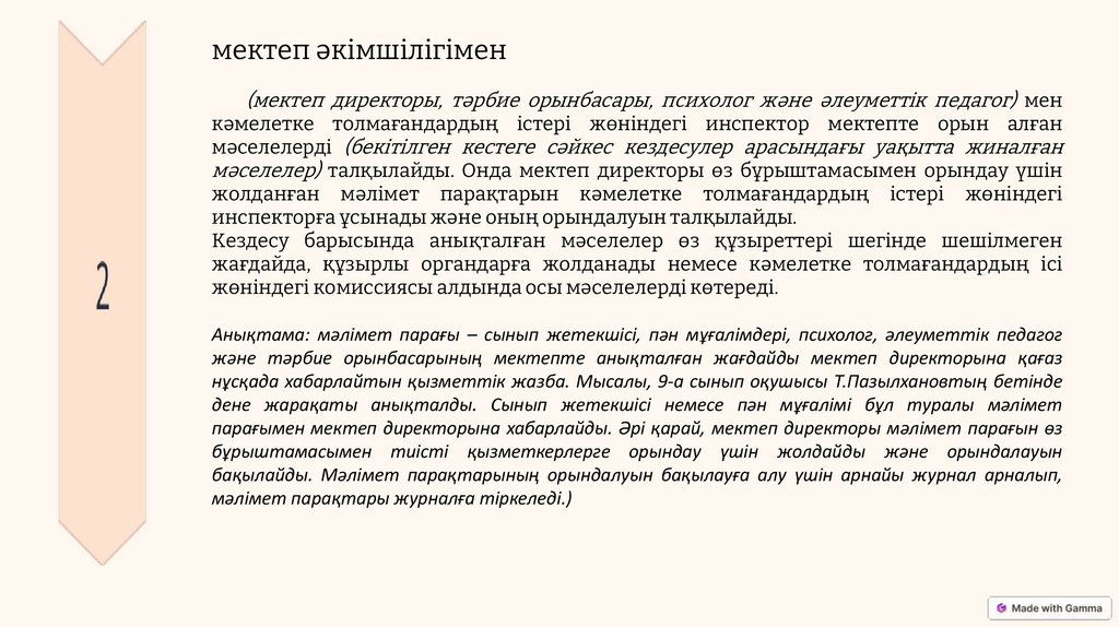 парағымен мектеп директорына хабарлайды. Әрі қарай, мектеп директоры мәлімет парағын өз