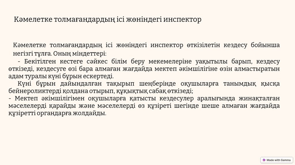 кәмелетке толмағандардың істері жөніндегі инспектор мектепте орын алған
