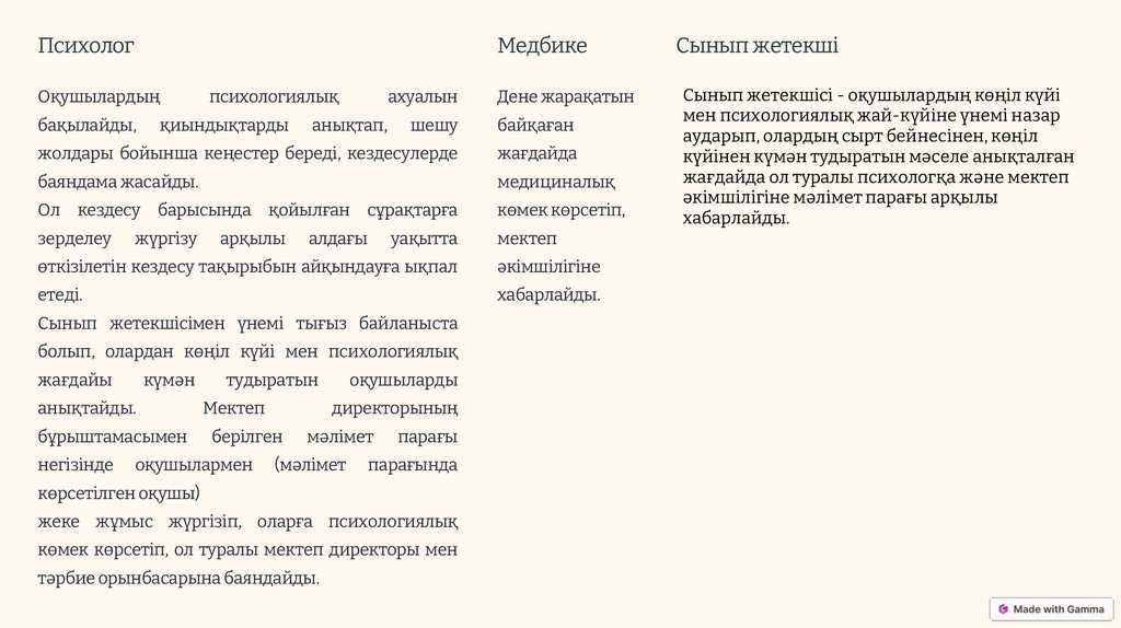 (психолог, сынып жетекші, медбике және т.б.) жүктеп, оның орындалуын