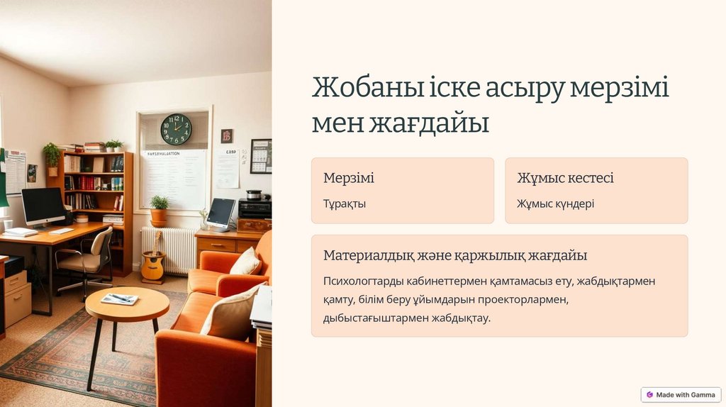 Психологтарды кабинеттермен қамтамасыз ету, жабдықтармен