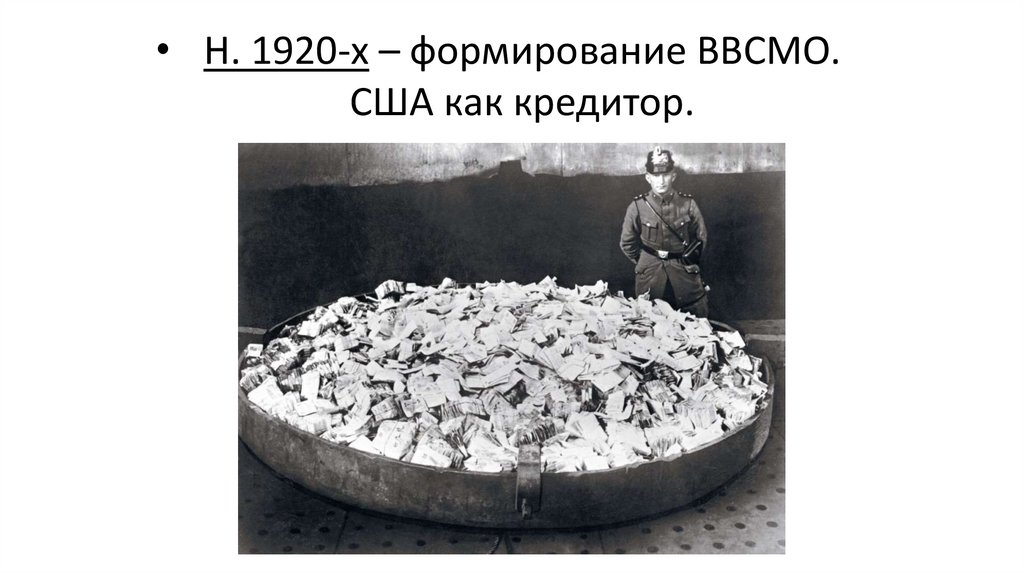 • Н. 1920-х – формирование ВВСМО.США как кредитор.